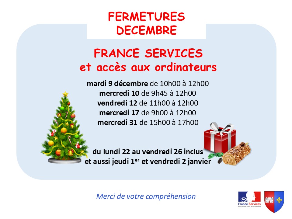 Fermetures de décembre de France Services Sancoins
